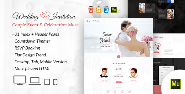 Wedding Invitation - Couple Event & Celebration Muse Template TFx Cedar Gayelord