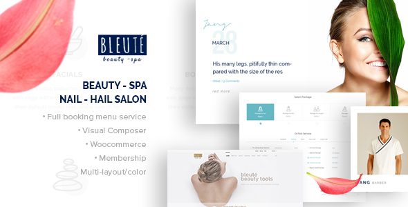 Bleute - Wordpress theme Beauty | Spa | Hair Salon | Makeup | Hair | Gym | Booking WooCommerce TFx