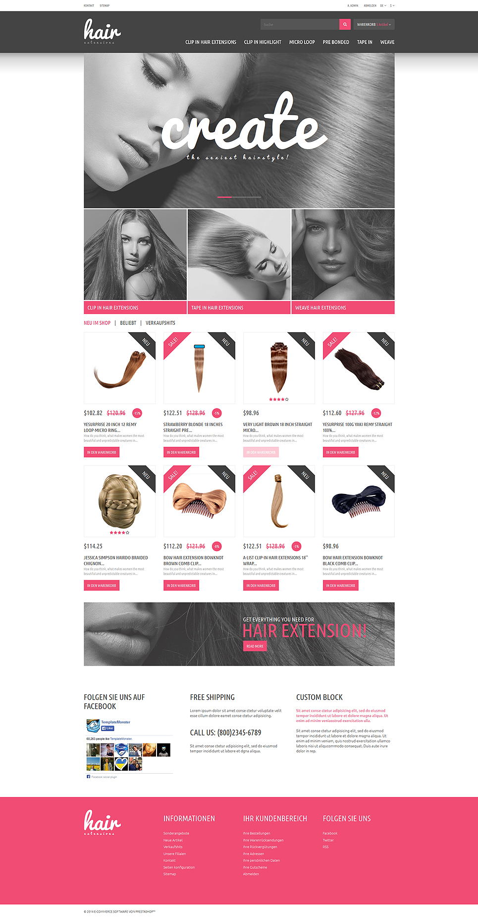 Hair Extensions Store PrestaShop Theme TMT