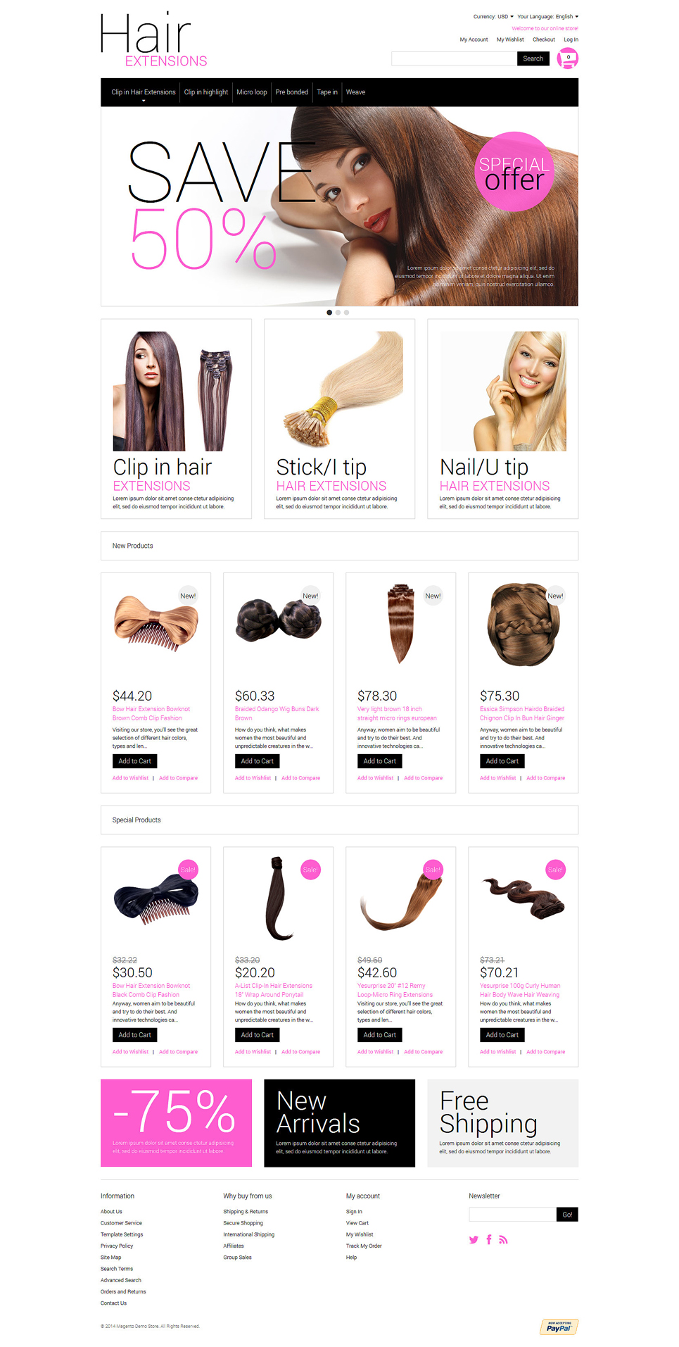 Multipurpose Hair Extensions Magento Theme TMT