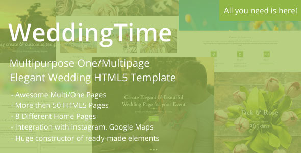 WeddingTime - Multipurpose One/Multipage Elegant Wedding HTML5 Template - Wedding Site Templates TFx Thaddeus Purdie