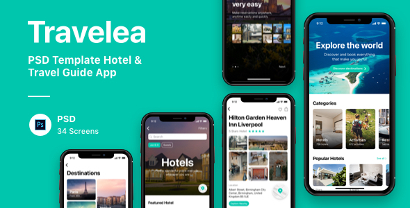 Travelea - PSD Template Hotel amp Travel Guide App TFx