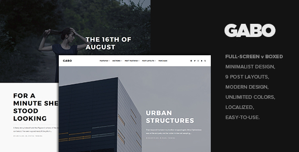 Gabo - Minimalist & Full-Screen WordPress theme - Personal Blog / Magazine TFx Sylvester Rigby