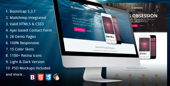 Obsession - HTML5 Bootstrap App Landing Page TFx