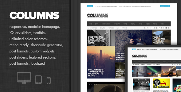 Created : 20 August 13 , Last Update : 20 August 13 , Columns : 4+ , Compatible Browsers : IE8, IE9, IE10, Firefox, Safari, Opera, Chrome , Software Version : WordPress 3.6, WordPress 3.5 , Documentation : Well Documented , Lay...