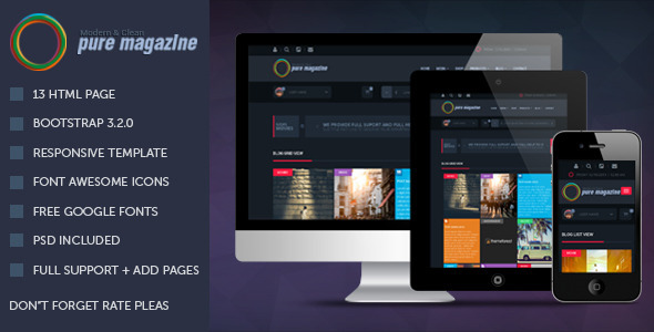 Pure Magazine: Responsive HTML Magazine Template TFx