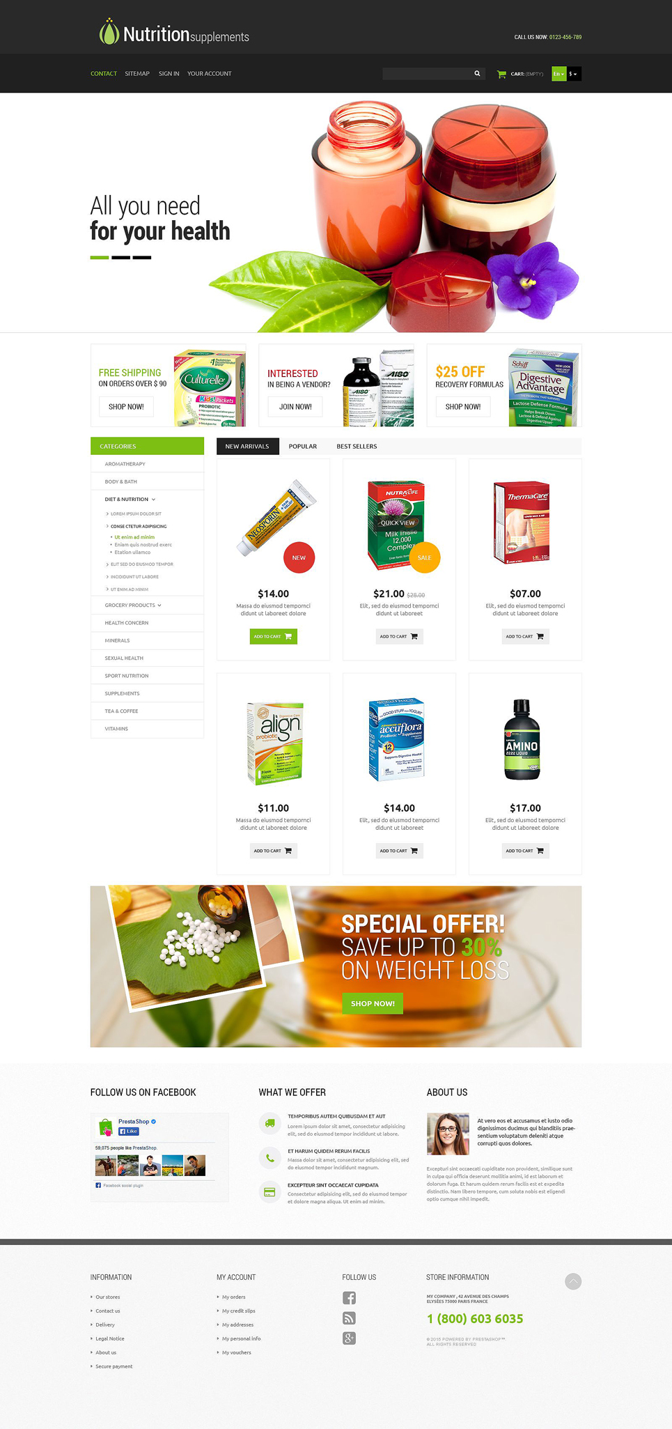 Nutrition Store Responsive PrestaShop Theme TMT