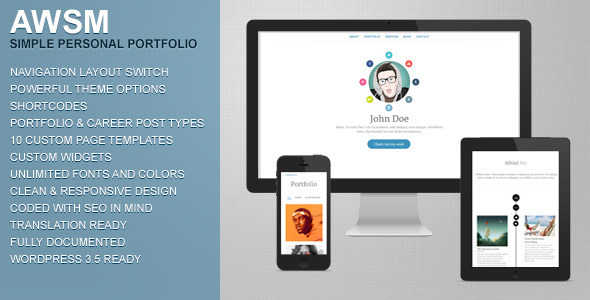 AWSM - Simple Personal Portfolio WordPress Theme Creative