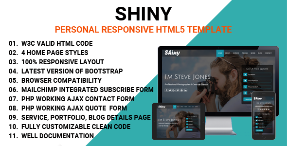 Shiny - Personal Responsive HTML5 Template - Personal Site Templates TFx Katashi Theobald