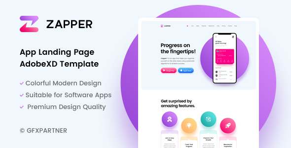 Zapper App Landing Page Adobe XD Template TFx