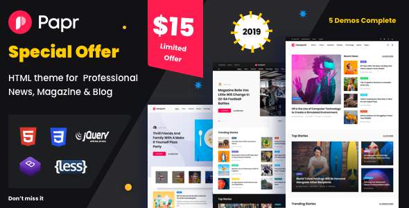 Papr | News Website Template TFx Major Attila