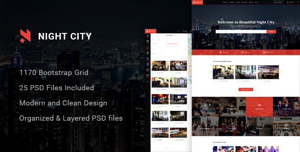 Night City - Multipurpose Geolocation Directory & Events PSD Template TFx