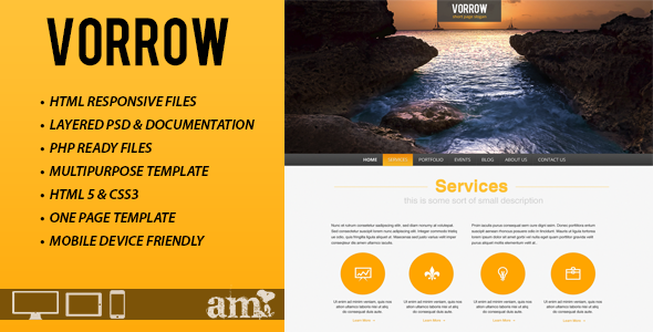 Vorrow One Page Responsive HTML Template Creative